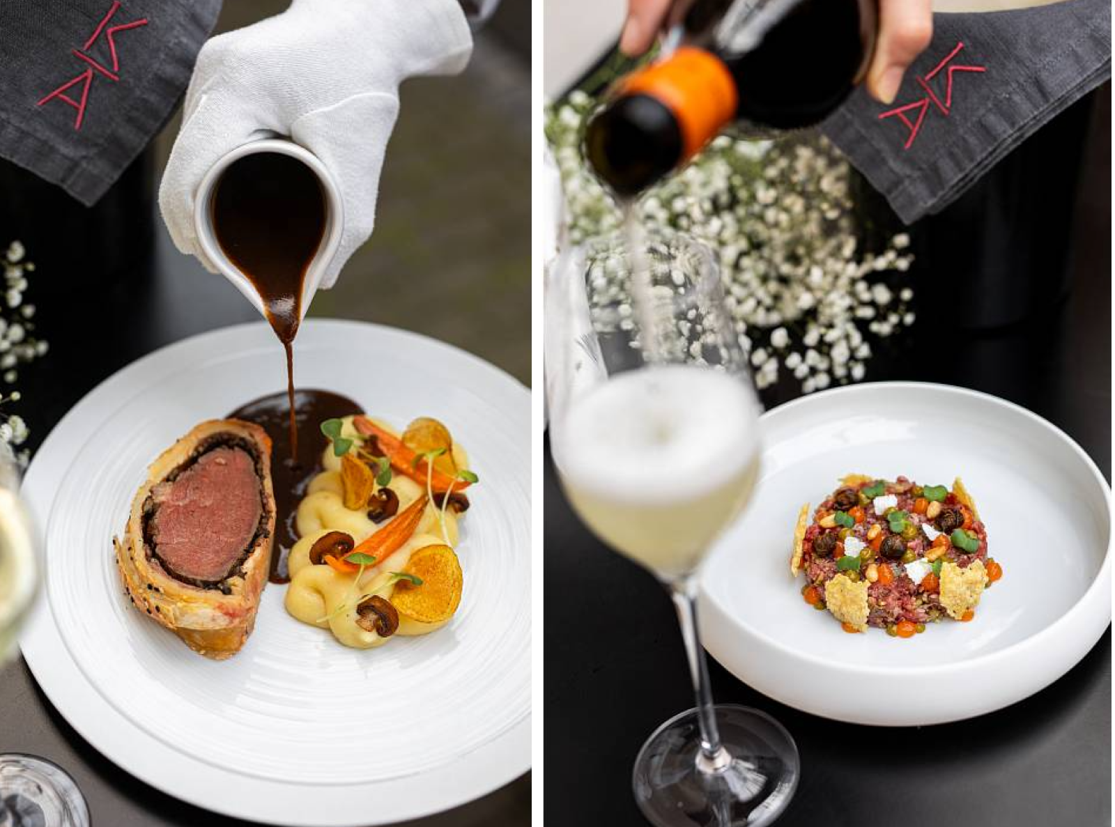 Večeře se odehraje v horním patře naší Akademie, v elegantní jídelně s pohodlným servisem a klidnou, sváteční atmosférou. Komorní počet 14–18 hostů zaručuje osobní přístup a blízkost celému dění. Během večera budete mít možnost nahlédnout přímo do kuchyně, sledovat finální úpravy pokrmů nebo si jen užívat plynulý rytmus večera a energii, která kolem ploten vzniká.